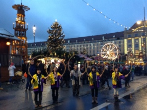 最後の観光地ドレスデンでは穴場(モーリッツブルグ城)観光とドイツ最古のクリスマスマーケットを見学、そこで市民のみなさんに一演技お見せしました。