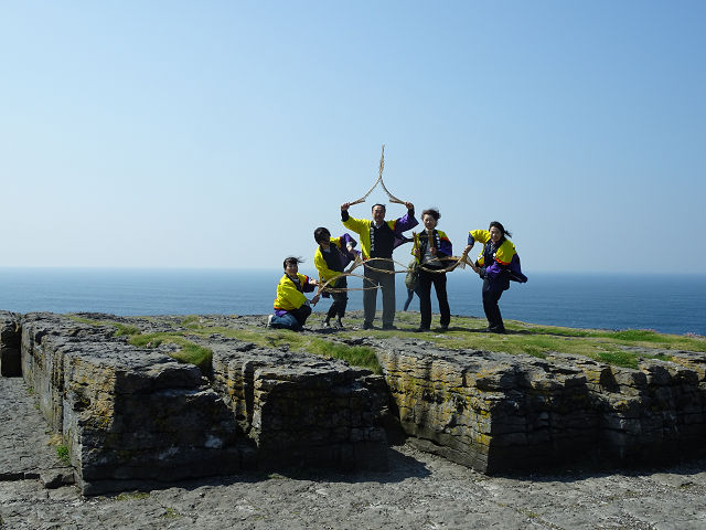 断崖海岸線を背景に(ああ風が強い!)