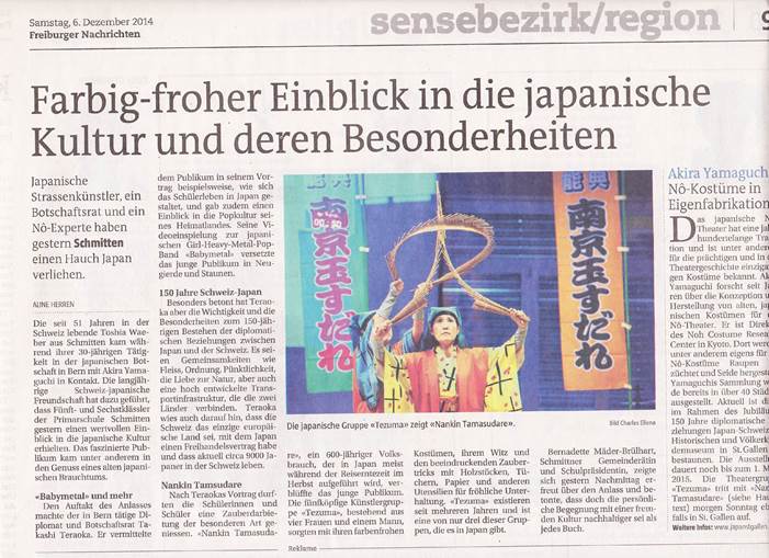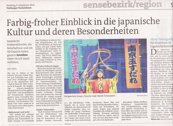 に私たちの南京玉すだれや和妻などの公演がありました。私たちの公演にあたり2014年9月にザンクトガレン歴